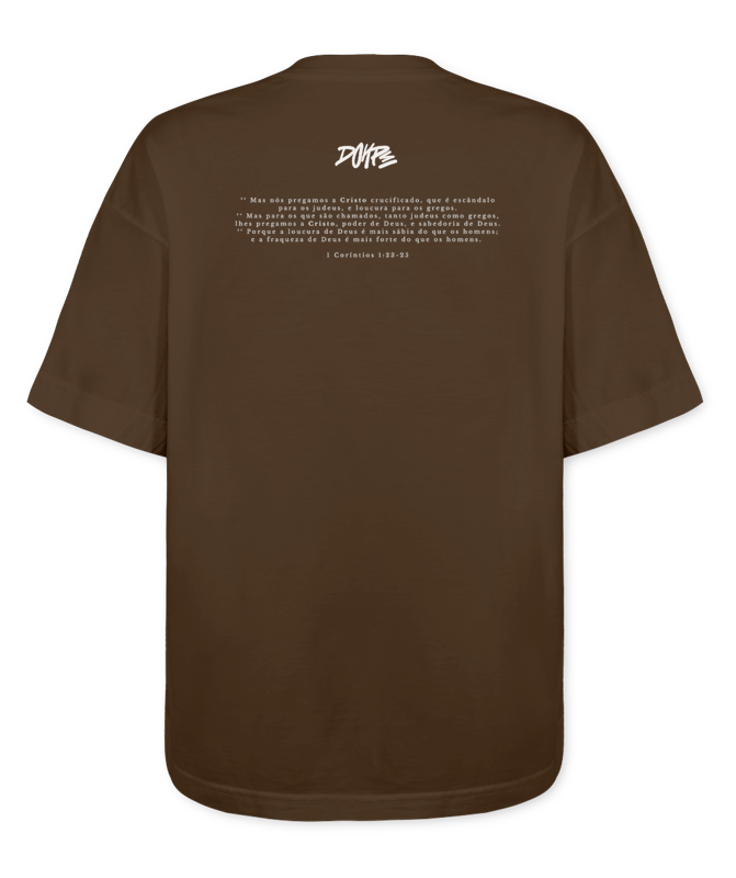 A Camiseta Super Oversized “CRISTO” foi criada pra deixar claro, sem nenhuma dúvida, qual é a mensagem central da Dohpe. Na frente, o nome CRISTO em branco, em um lettering forte e curvado, ocupa o peito inteiro como um manifesto visual: simples, direto e inegociável. Nas costas, o logo Dohpe acompanha o texto de 1 Coríntios 1:23-25, onde Paulo fala de Cristo crucificado como escândalo para uns, loucura para outros, mas poder e sabedoria de Deus para aqueles que creem. A peça une estética de streetwear e camiseta de banda com teologia profunda, lembrando que a “loucura” da cruz continua sendo a mensagem que carregamos no dia a dia. Perfeita pra quem quer vestir algo marcante, pesado de estilo e, ao mesmo tempo, totalmente centrado em Jesus!